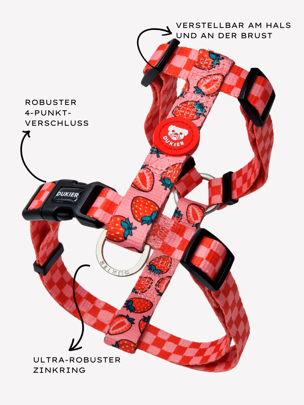 Das Klassische Hundegeschirre ist im Hals- und Brustbereich sehr verstellbar und hat eine H-Form. Lassen Sie immer ein paar Zentimeter Spielraum.