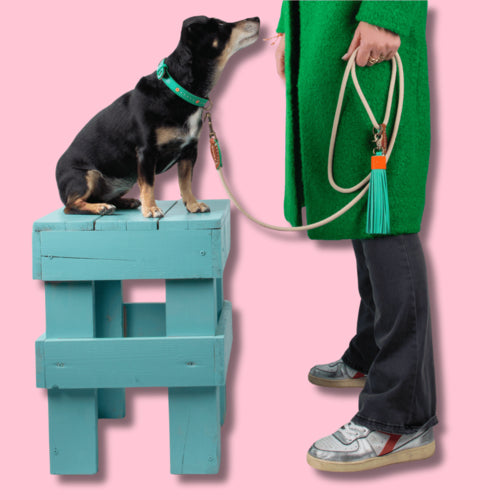 Die sandfarbige Sand extra lange Leine ist eine wunderschöne Leine in neutraler Farbe. Dank der Optik passt diese Leine wirklich zu allem.