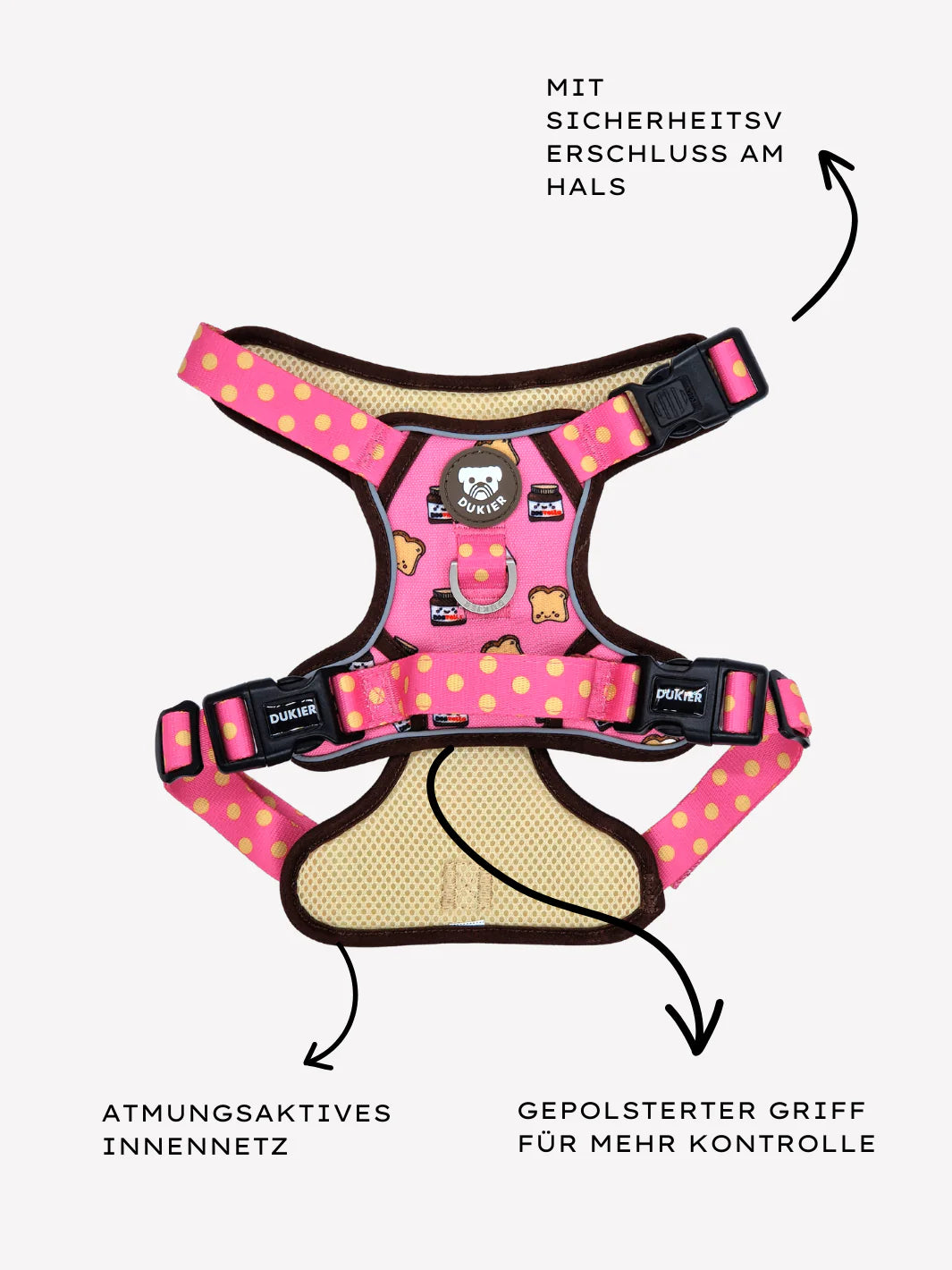 - Verschließbare Sicherheitsschnalle am Hals.