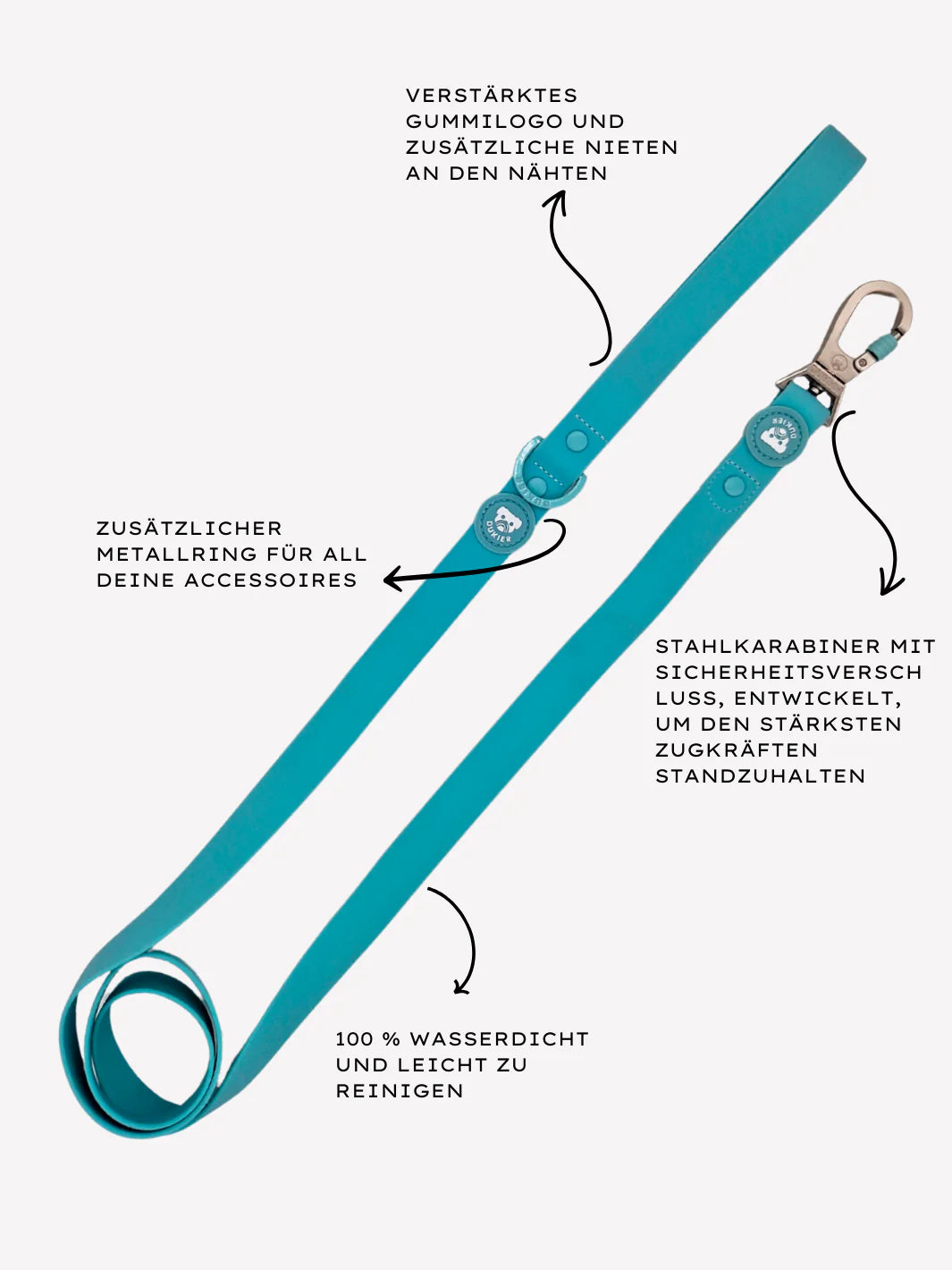 Die perfekte Hunderleine für Sommerspaziergänge am Strand. Ihr wasserdichtes Material hält alles aus, ebenso wie der verstärkte doppelte Verschlusskarabiner. Außerdem ist sie superweich, so dass Sie sich auch beim stärksten Ziehen nicht verletzen.